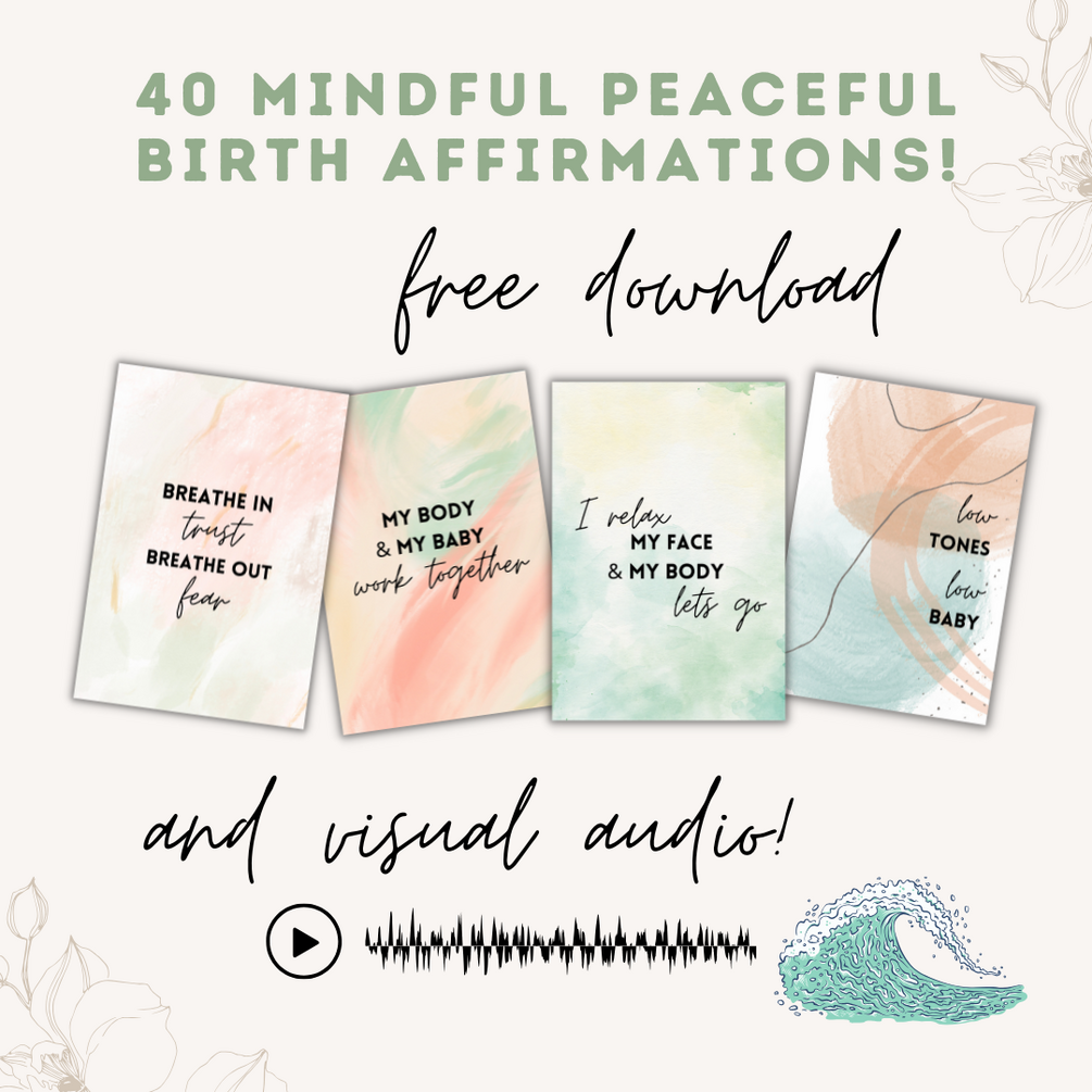 Next, once you’ve spent time processing your feelings, thoughts, experiences, and more, it’ll be time to practice being in the current moment with my Peaceful Birth Affirmations & Mindful Birth ASMR, which I’m including here for FREE. Once we’ve let go of the past, we’ll spend time in the present.